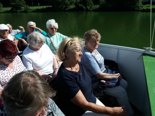 Am nächsten Tag feierte unsere Resi ihren Geburtstag. Zu ihrer Überraschung gab es vom Haus Sekt für uns alle und für das Geburtstagskind noch einen Kuchen. Nach dem guten Mittagessen stand unser erster Ausflug auf dem Programm. Wir besuchten den bekanten Weinort Bernkastel-Kues,wo wir von einem Ausflugsschiff erwartet wurden. Bei strahlendem Sonnenschein genossen wir auf dem Schiffsdeck die herrliche Landschaft.
